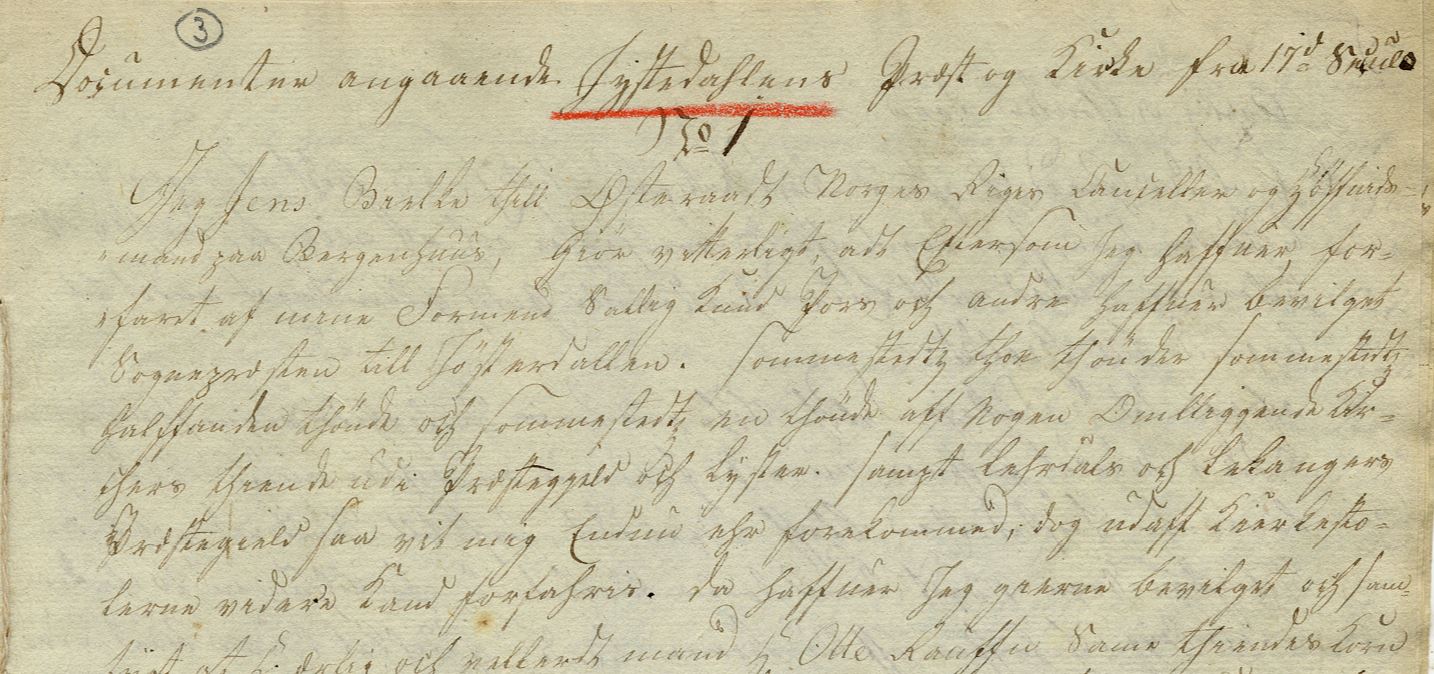 Documenter angaaende Jystedahlens Præst og Kirke fra 17de Hundr. (avskrift 1823) (30 Mb) (Foto: UBB, Spesialsamlingene)