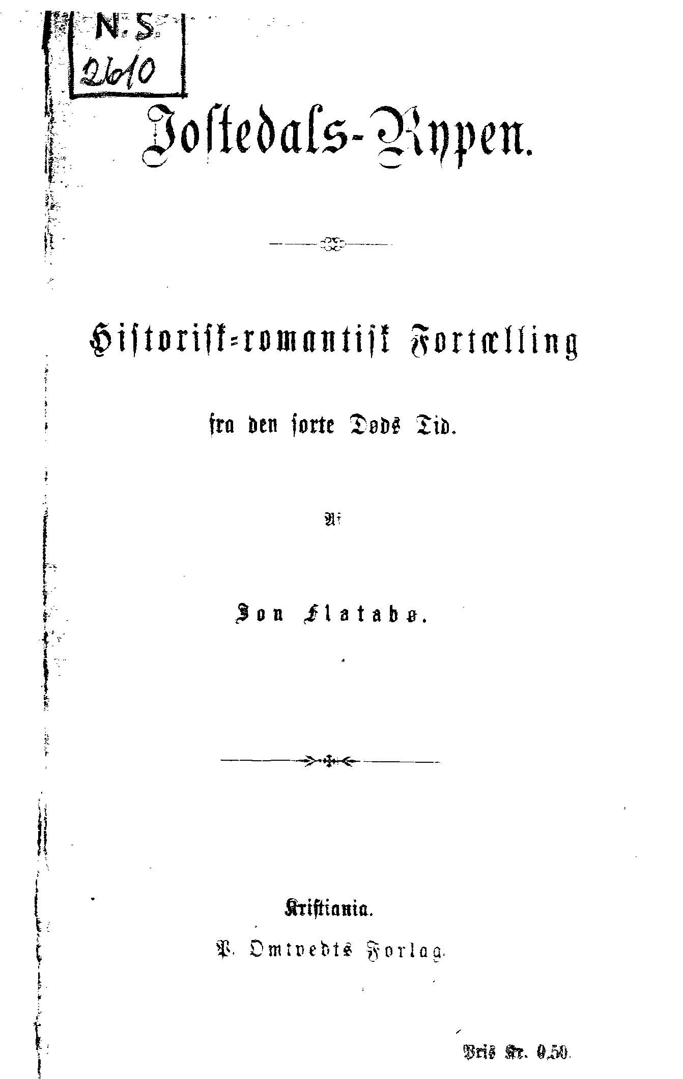 Jon Flatabø, Jostedals-Rypen. Historisk-romantisk Fortælling fra den sorte Døds Tid, Kristiania, 1899.